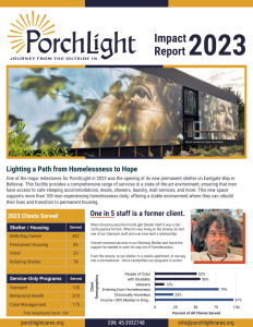 The 2024 report reflects the impact PorchLight made from January to December.  It was a year of rising need, unexpected weather emergencies, and meaningful progress. We’re proud to have navigated more men than ever into housing, while expanding employment services that open doors to long-term success. Throughout the year, we continued to provide essential behavioral health care, shelter, and housing navigation — all grounded in dignity-first care.