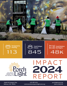 Founded in 1993, PorchLight is a nonprofit organization helping unhoused men in East King County regain stability through safe shelter and comprehensive support that addresses health, housing, and self-sufficiency.